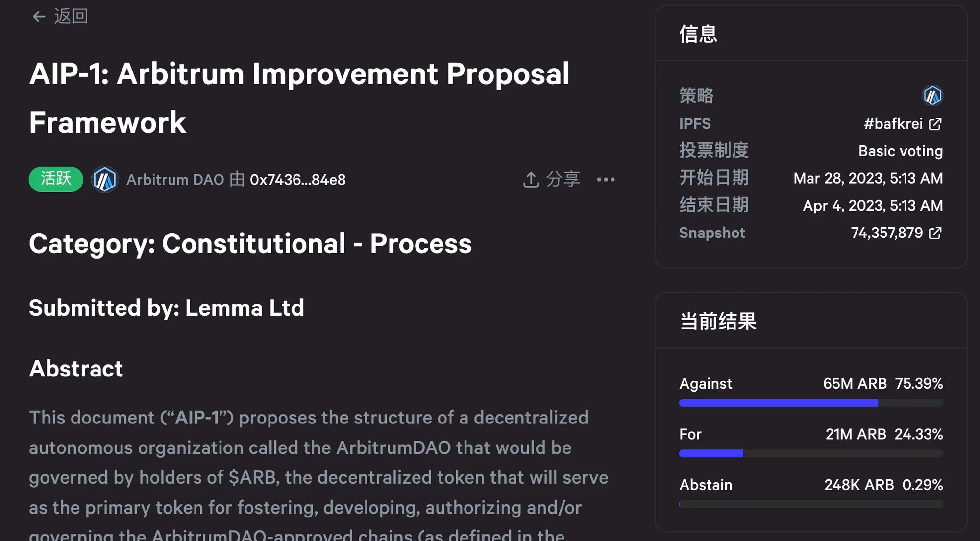 Loopy Lu: 引发争议的提案是什么?Arbitrum 社区提出了 AIP-1,拟引入一个名为 Arbitrum DAO 的去中心化自治组织结构,该组织由 ARB 持有者管理,旨在促进 Arbitrum 生态系统的成长和发展。然而其中包括原本属于社区的 7.5 亿枚 ARB 可能被转移给 Arbitrum 基金会,并以此建立生态基金。此外,还有投资者反馈持有 ARB 空投却无法参与投票等问题。最受诟病的是基金会转移了 5000 万枚 ARB 代币,人们质疑基金会过早大额套现。( 来源 )