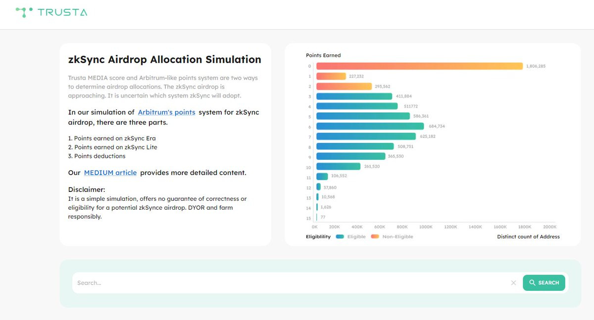 TrustaLabs: 参照 Arbitrum 规则的 zkSync 空投分配模拟器:https://trustgo.trustalabs.ai/simulation( 来源 )