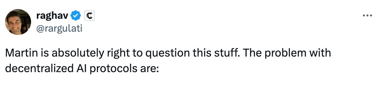 导读:近日,Martin Shkreli 撰文质疑 io.net 的 GPU 数量,认为各处数据说法不一,且存在较大水分。CoinList 首席执行官 raghav 认为 Martin 的质疑是正确的,并总结当前去中心化 AI 协议面临的问题。
