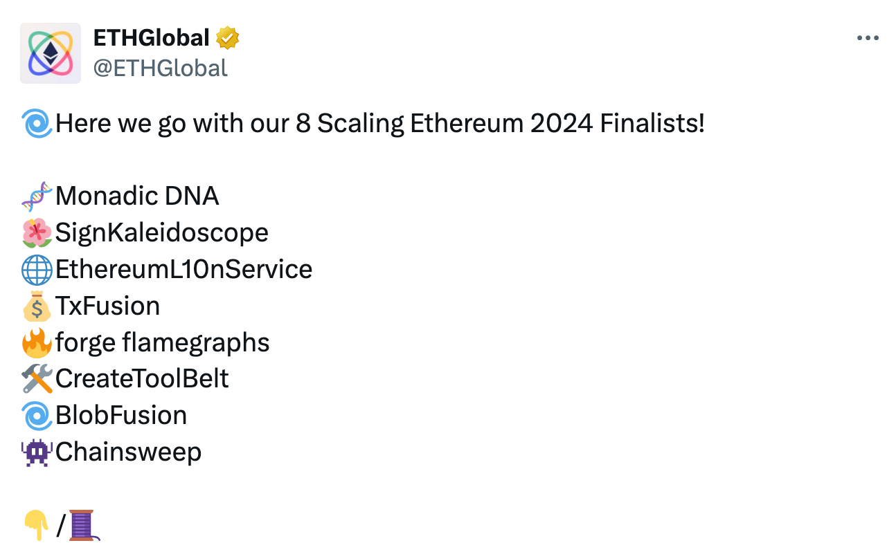 5️⃣ 【英文长推】盘点 Scaling Ethereum 2024 入围决赛的 8 个项目