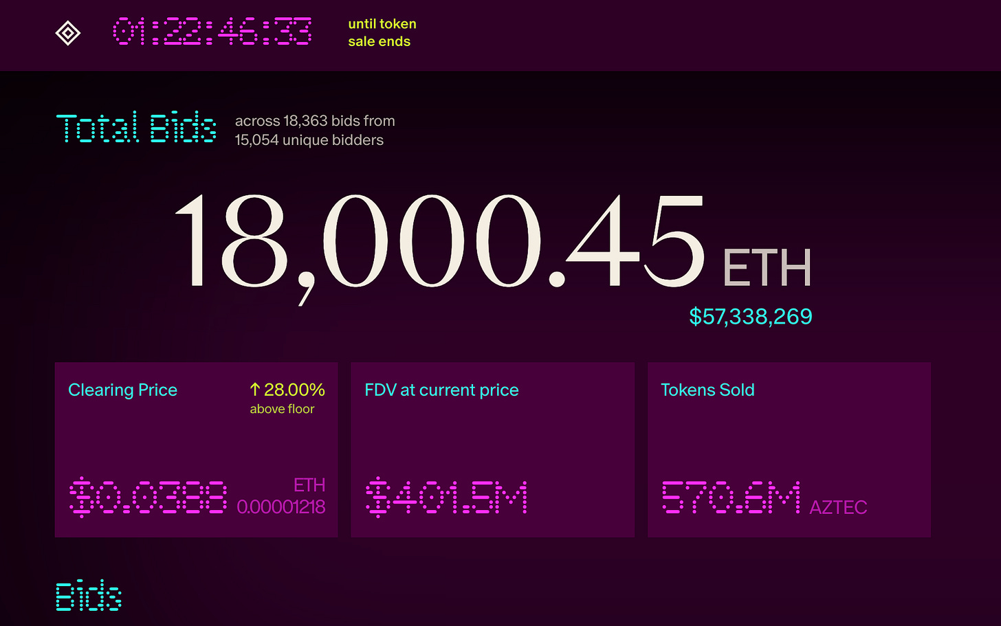 作为去中心化网络的燃料,原生代币 AZTEC 的发行机制本身也体现了项目方对公平性的极致追求。Aztec 摒弃了容易导致机器人抢跑(Sniping)和Gas费战争的传统发行模式,联合 Uniswap Labs 引入了创新的「连续清算拍卖(CCA, Continuous Clearing Auction)」。