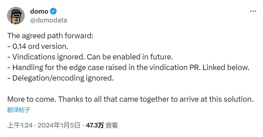 短期内不讨论 BRC-20 是否冻结于 Ordinals 0.14 版本,当前主要着眼于安全性、稳定性以及相关测试工作,后续根据结果再进一步决定。
