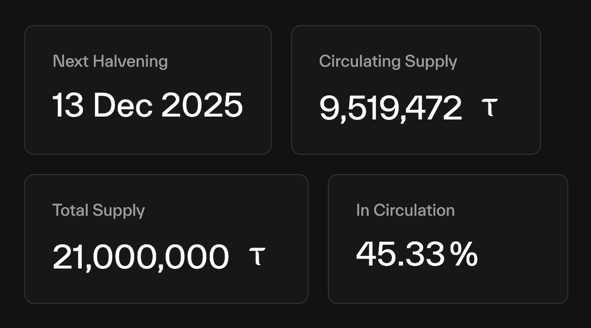 Lucas:Bittensor 的 TAO 减半预计将在 2025 年 12 月至 2026 年 2 月之间发生,当前预计日期为 2025 年 12 月 13 日。与比特币类似,TAO 的总发行量被硬性限制在 2100 万枚,每当流通量达到其中的一半(即 1050 万枚)时,区块奖励就会减半。当前网络流通约为 940 万 TAO,离阈值不远。然而,与比特币不同的是,Bittensor 的激励机制分布在多个子网中,每个子网都有自己的原生代币 Alpha(α)和独立的流动性机制。因此,这次减半带来的连锁反应将远比比特币复杂得多。减半后的主要变化如下:首先,区块奖励将从每个区块 1 枚 TAO 降至 0.5 枚,即每天新发行的 TAO 数量将从约 7200 降至 3600 枚。其次,网络的年通胀率将从 25% 降至 12.5%。再者,注入每个子网交易池的 Alpha 数量(Alpha_in)也将减少一半。由于 Alpha_in 由 TAO 排放量除以 Alpha 价格计算而来,TAO 排放的减少直接导致 Alpha_in 减少。这意味着交易池深度变浅,导致任意交易引起的价格波动加剧,特别是对于原本流动性较差的子网。需要注意的是,矿工、验证者和子网拥有者获得的 Alpha 奖励(Alpha_out)保持不变,只有在各个子网自身的减半事件中才会被削减。因此,减半带来的不是参与者奖励减少,而是整体生态结构的复杂调整。