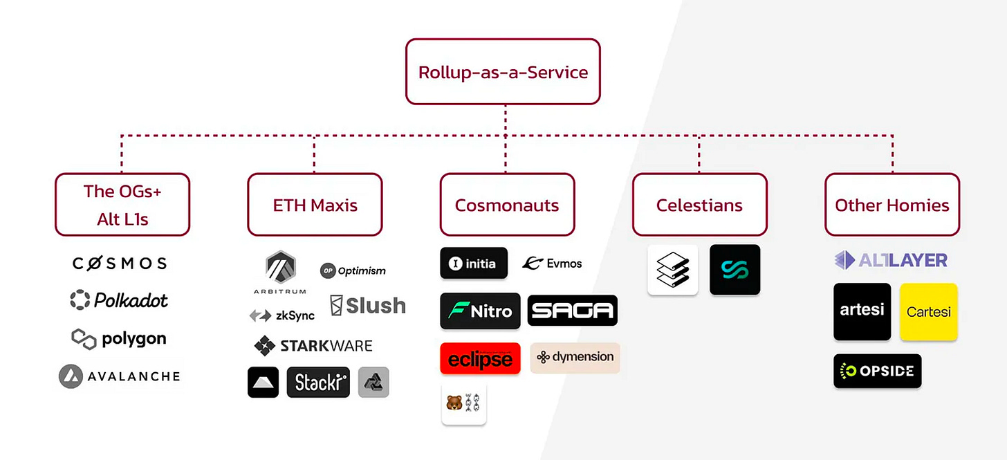0xjim: 4)Cosmos:Dymension RDK、Saga、Initia、Evmos SDK、Berachain 和 Eclipse 等。5)Celestia:Rollkit 和 Sovereign Labs。6)其他:Artesi、Alt Layer 和 Cartesi 等。【原文为英文】( 来源 )
