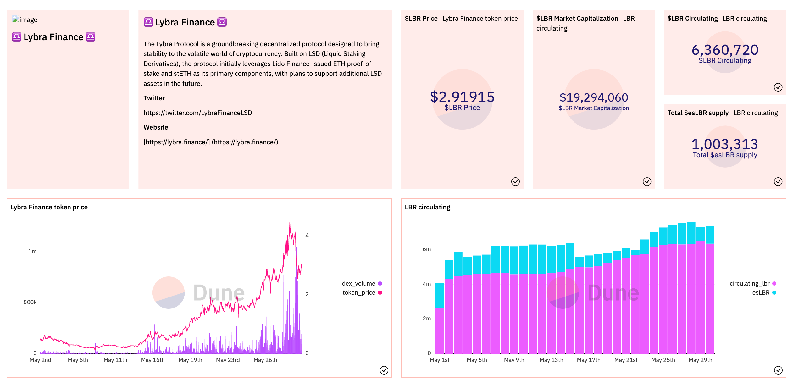 Yuuki: 综合来看,LBR 尽管产品结构存在争议,但其具备及时的产品交付与最低的挖矿抛压,以及易于传播的标签形象。在近期的巨大涨幅中,团队配合二级市场适时推出 V2 版本,拓展抵押品、登录 Arbtrum、引入代币通缩概念等,成为价格上涨的助推器;目前市场进入博弈 LBR 上 CEX 预期的阶段。