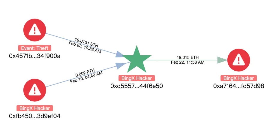 事件发生后,慢雾第一时间通过攻击者获取 Safe 多签的手法以及洗币手法推测攻击者为朝鲜黑客。使用 MistTrack 分析,还发现了该事件的黑客地址与 BingX Hacker、Phemex Hacker 地址关联的情况。ZachXBT 也实锤了本次攻击与朝鲜黑客组织 Lazarus Group 有关,该组织一直以实施跨国网络攻击和盗窃加密货币为主要活动之一。从攻击手法上看,WazirX 被黑事件和 Radiant Capital 被黑事件与本次攻击都有相似之处,这三个事件的攻击目标都是 Safe 多签钱包。对于 WazirX 被黑事件,攻击者同样提前部署了恶意的实现合约,并通过三个 Owner 签署交易,通过 DELEGATECALL 将恶意逻辑合约写入 STORAGE 0 存储,以替换 Safe 合约为恶意实现合约。
