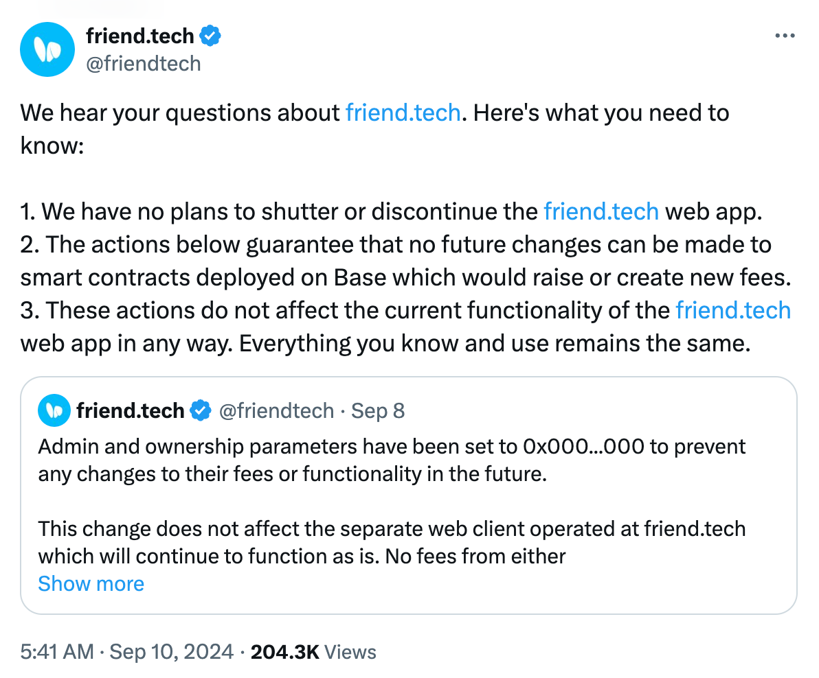 话题 1:Friend.tech 软 Rug 的影响