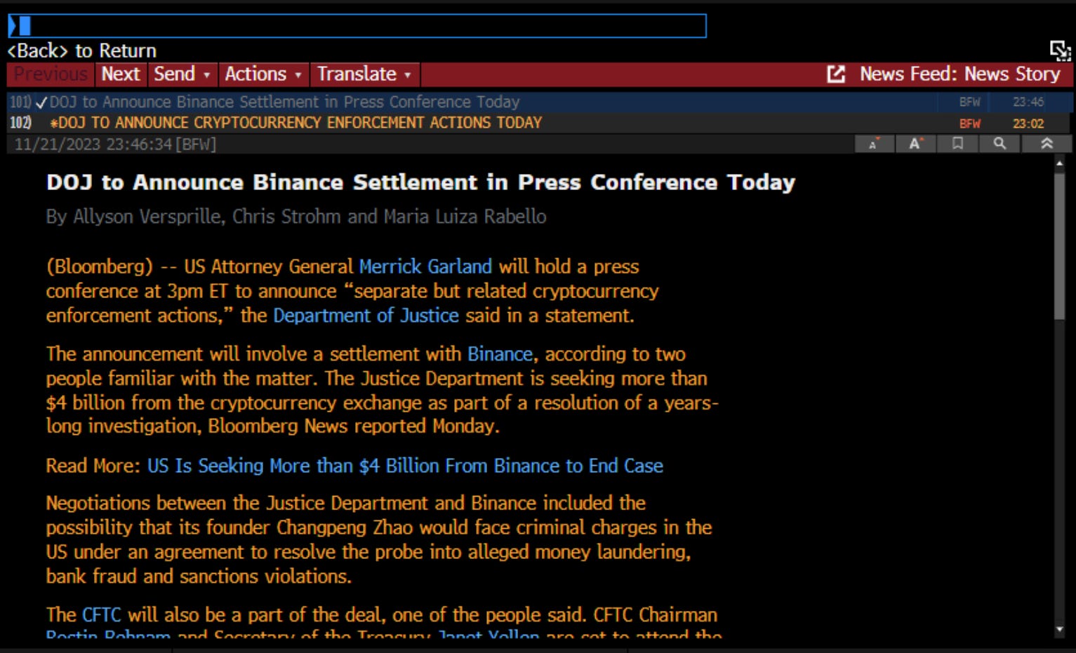🔥 美国司法部对币安提出 40 亿美元索赔并对其 CEO 提出刑事指控