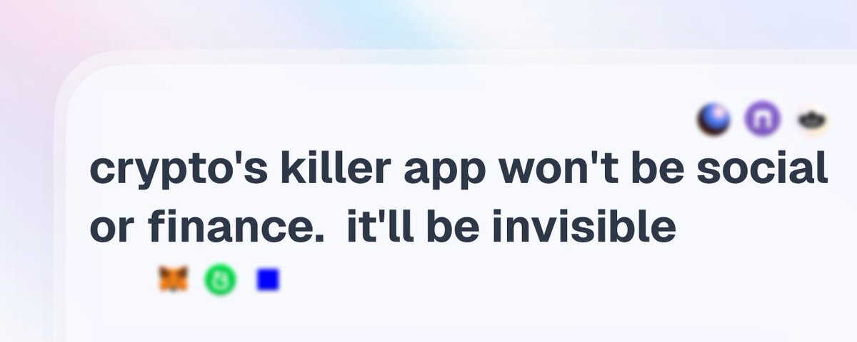 加密行业的未来不属于那些让用户必须理解钱包、助记词、gas 费、跨链桥的产品,而属于那些将这些复杂流程完全隐藏的体验。我们可以大胆预测:第一个拥有十亿用户的加密应用,根本不会在营销里提到区块链或加密这两个词。用户不会在意他们是否在用区块链,只在意产品是否真的比传统方案好。对建设者来说,这意味着必须彻底转变思维方式:别再试图教育用户进入 crypto 生活方式,别再强迫他们学术语、背助记词、调钱包,而是要识别现实中可被区块链优化的问题,把链上复杂度全部抽象掉,让体验变得如传统应用一样顺畅熟悉。最好的加密应用将不说 crypto,而是说:全球一键转账、5% 高收益存款、你真正拥有的数字资产。它们不靠意识形态打动人,而是靠更好的用户体验胜出。当区块链成为一层看不见的通用操作系统,它的成功也正是因为它消失了。这场革命不会被 token 化,也不会被大肆宣传,它将悄然进行,但影响深远。( 来源 )