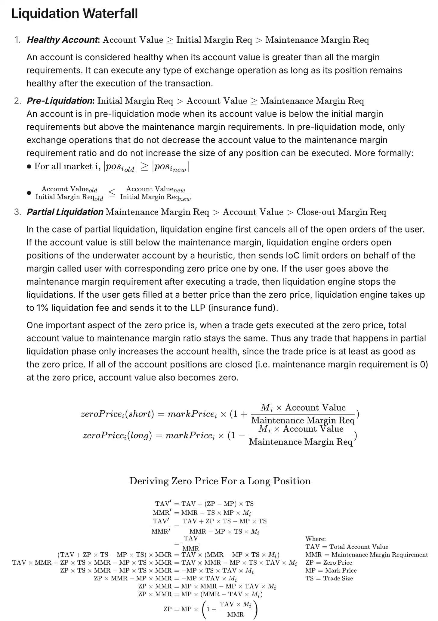 BlockBeats:在永续合约平台中,理解初始保证金(IM)和维持保证金(MM)是首要前提:IM 决定可开的最大杠杆,而 MM 则是清算线,当账户权益(抵押金 + 未实现盈亏)跌破 MM 时,系统会接管仓位并进入清算流程。清算触发并非以「最新成交价」为准,而是以标记价(Mark)作为核心参考。标记价一般由外部指数、预言机与平台自身订单簿共同决定,并经过平滑和防操纵处理,相较而言,指数价更接近外部现货参考,最新价则容易因瞬时扫单而失真。以 Hyperliquid 为例,其清算机制是当权益跌破 MM 时,系统优先将清算单直接打入订单簿,依靠市场化方式消化风险。大仓位通常会先行部分清算(例如 20%),冷却后再继续执行,如果仍无法完成清算且权益进一步跌破更深阈值(如低于 2/3×MM),就会触发后备清算机制,由 Liquidator Vault(HLP 组件)接手。该流程不收清算费,但在深度不足的盘前市场,清算单本身可能进一步推高或压低价格,形成连锁清算效应。XPL 事件正是这一机制的典型案例:巨鲸通过扫簿推高成交区间,导致标记价上跳,空头仓位迅速跌破维持保证金,引发连环清算,进而在数分钟内推动价格近 +200%,最终伴随主动获利了结而急速回落。