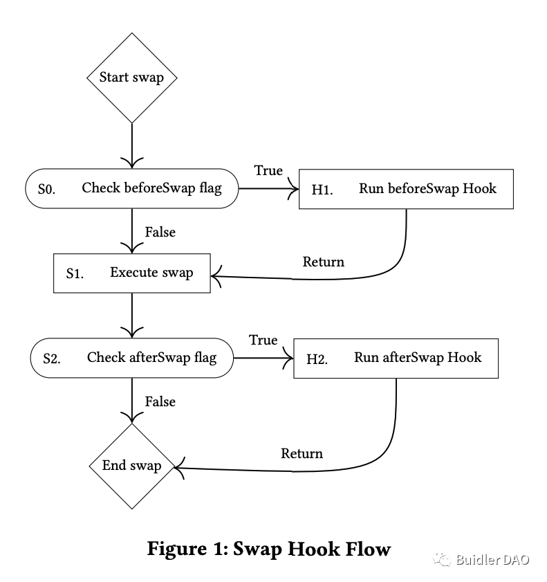 根据 Uniswap 官方白皮书,限价单交易隶属于其新功能的 Hooks 之下,所以是依靠 Hooks 机制来实现链上限价单交易。在 DeFi 中,Hooks 是一种编程概念,指的是一组用于在智能合约执行特定操作时自动触发的函数或代码片段,可用于在特定事件发生前、后或期间执行自定义逻辑。通过使用 Hooks,开发人员可以实现更灵活、可定制和可扩展的 DeFi 应用程序。不仅如此,Hooks 还允许以不同的方式使用 Uniswap 的流动性。这类似于 Balancer 的 Boosted Pools,超出范围的流动性可以存入其他协议,例如借贷者,以获得额外的收益。