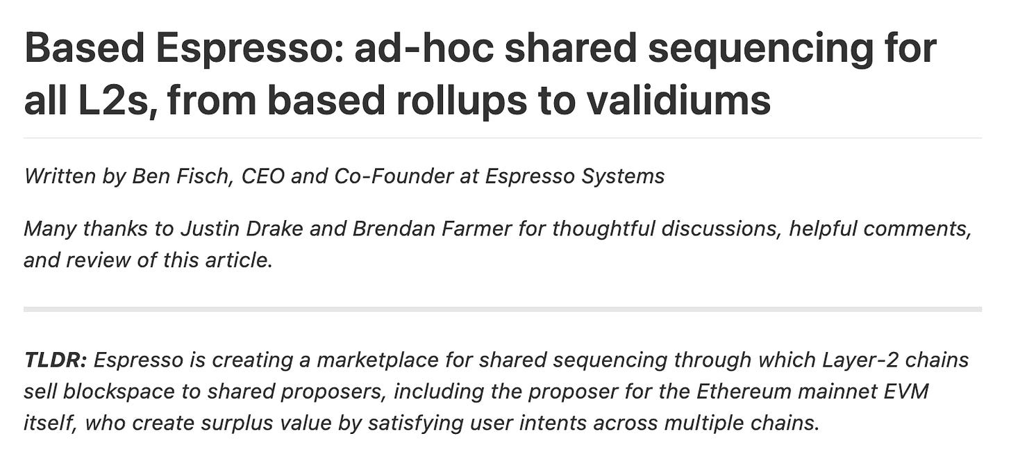 8️⃣ 项目介绍|Based Espresso 简介:如何真正构建共享排序市场?