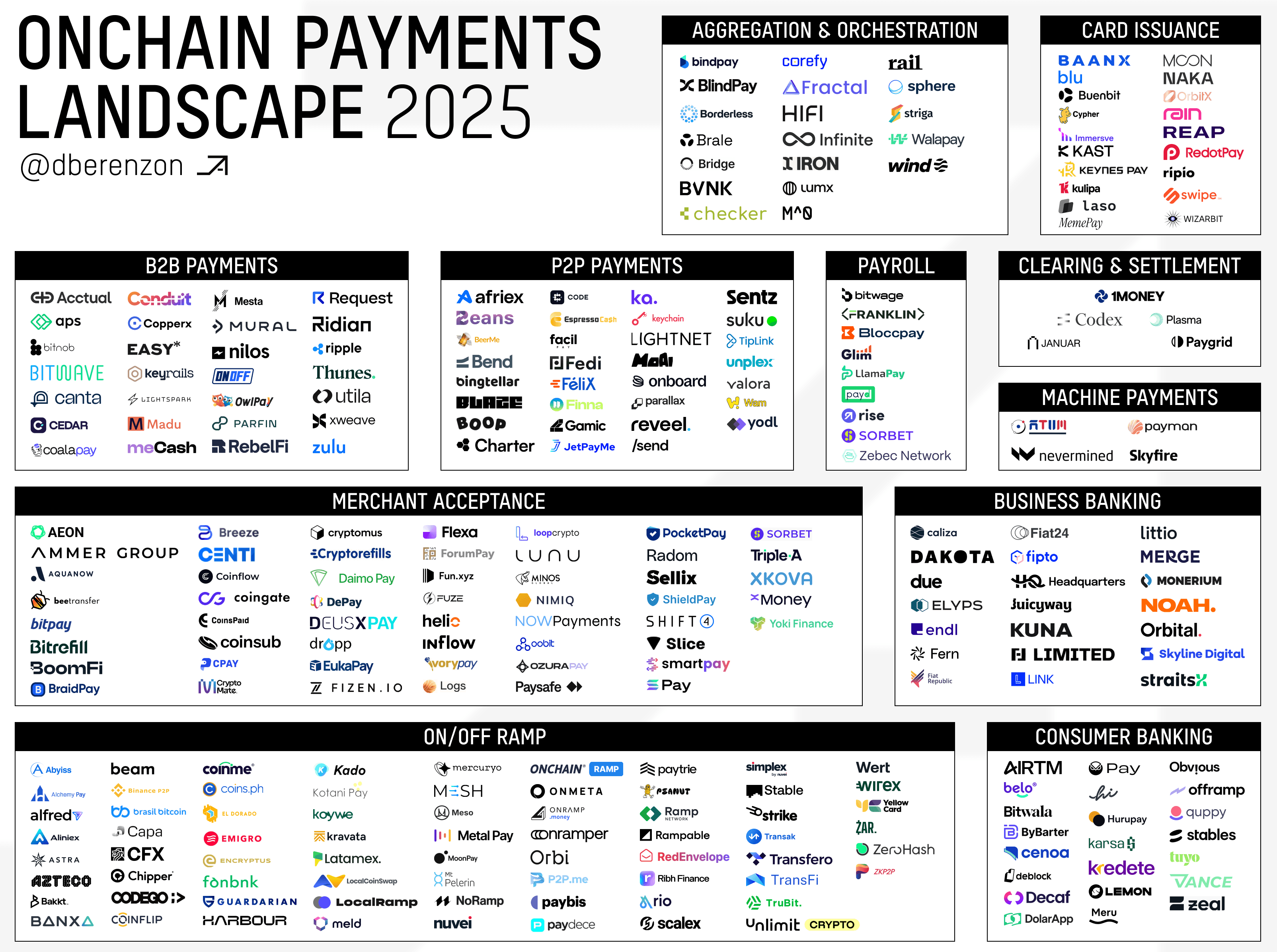 出入金市场竞争激烈,充满了许多失败和停滞的案例。尽管早期的尝试未能成功规模化,但在过去几年中,这个市场已经成熟,许多公司能够可持续运营并提供全球本地支付通道的接入。虽然接入与退出市场可以作为独立产品使用(例如,仅仅是购买加密资产),但它们无疑是打包服务(如支付)流程中的关键部分。出入金通道通常包括三个部分:获得必要的许可证(如 VASP、MTL、MSB),确保与本地银行合作伙伴或支付服务提供商(PSP)达成合作,以接入本地支付网络,以及与市场制造商或场外交易(OTC)交易台建立流动性连接。最初,入金市场由交易所主导,但如今,越来越多的流动性提供者,包括小型外汇和场外交易台到像 Cumberland 和 FalconX 这样的较大交易公司,提供接入服务。这些公司通常能够处理每天最多 1 亿美元的交易量,这使得它们在流行资产的流动性方面不会出现短缺。一些团队甚至更倾向于选择这些公司,因为它们能够保证价差,从而帮助控制利润率。