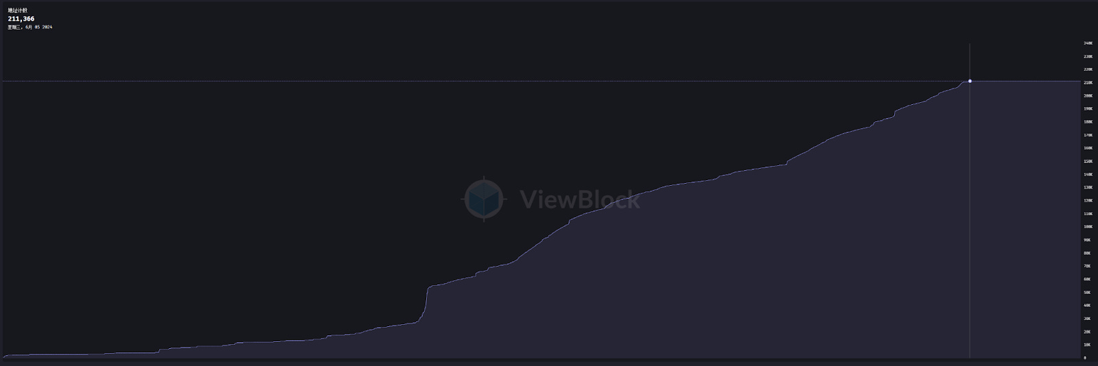 另外,Arweave 生态内还有一个奇怪的数据现象,自 2024 年 6 月 1 日以来,Arweave 的地址总数再无新增,一直定格在 211366 这个数字上。不知是生态的用户增长发生了完全停滞,还是浏览器的数据维护出现问题。不过,正如 AO 的不温不火一般,这些细节 BUG 更是无人讨论。根据官方数据显示 AO 网络目前的 TVL 约为 3.15 亿美元。与测试网阶段的 7 亿美元相比,反而有了不少下滑。从这一点来看,似乎用户对于 AO 网络后续的质押代币激励热情并不算高。( 来源 )