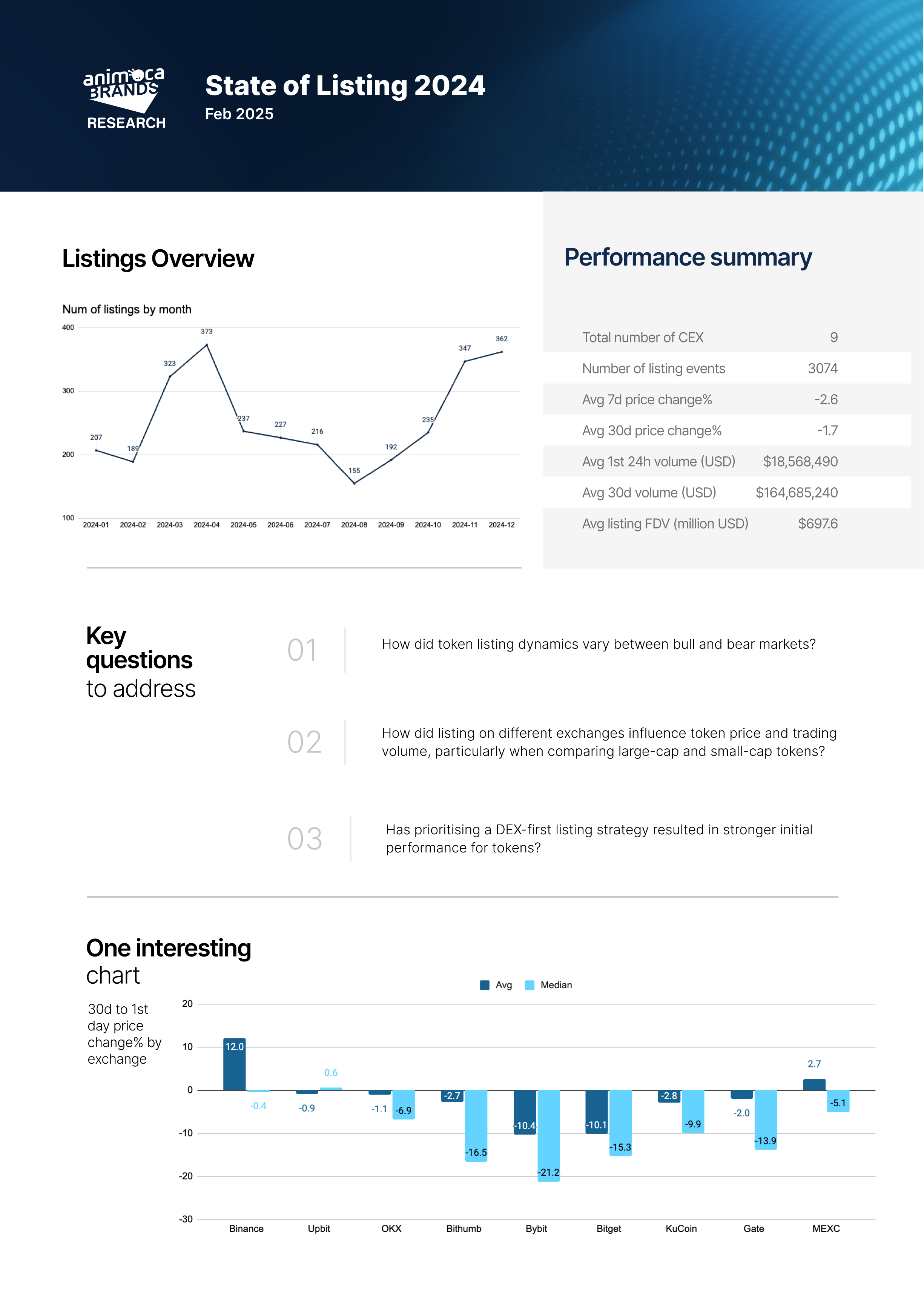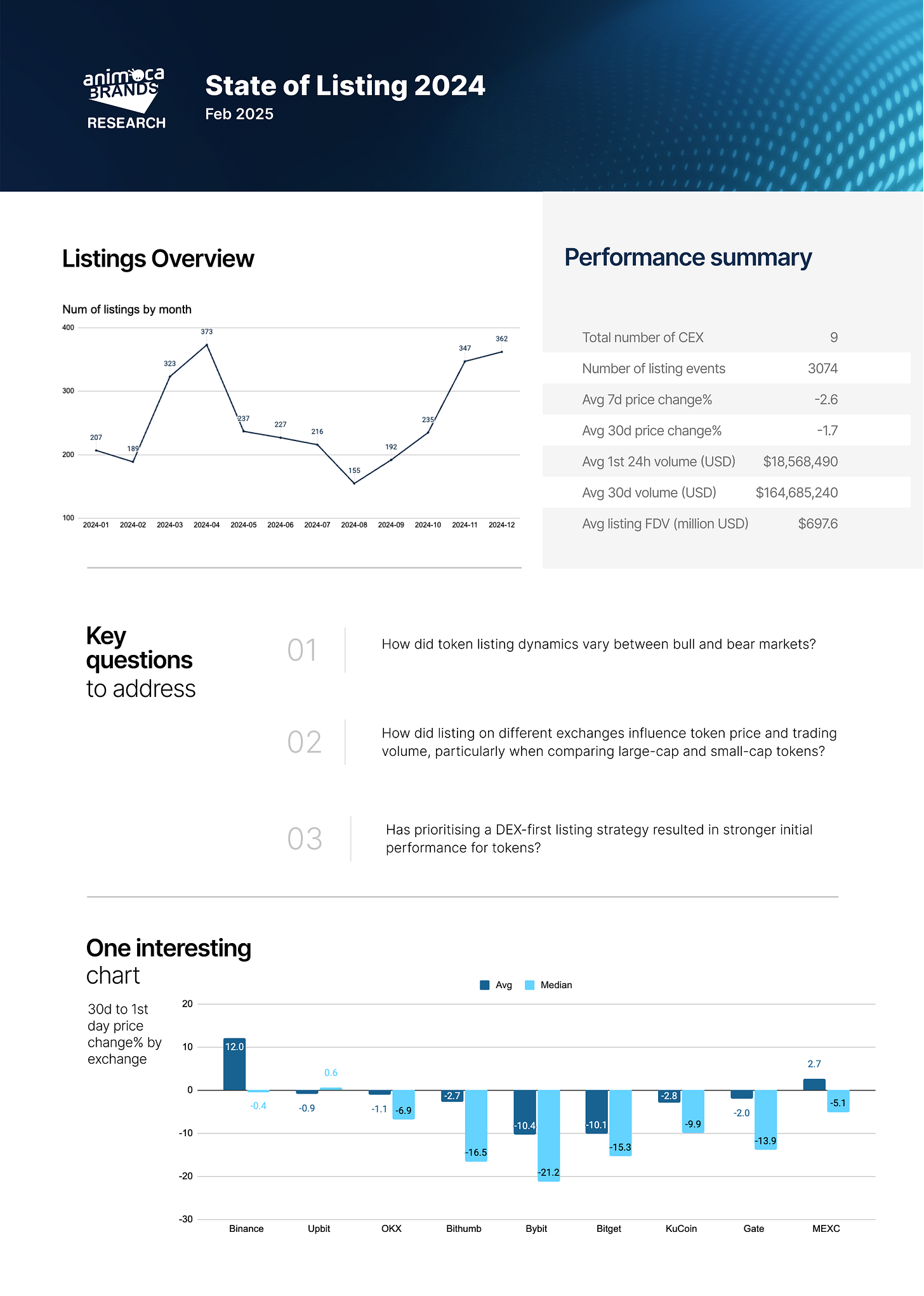 导读:Animoca Brands Research 撰文揭示了 2024 年去中心化交易所与中心化交易所之间在代币上市中的竞争,以及不同市场表现的差异。