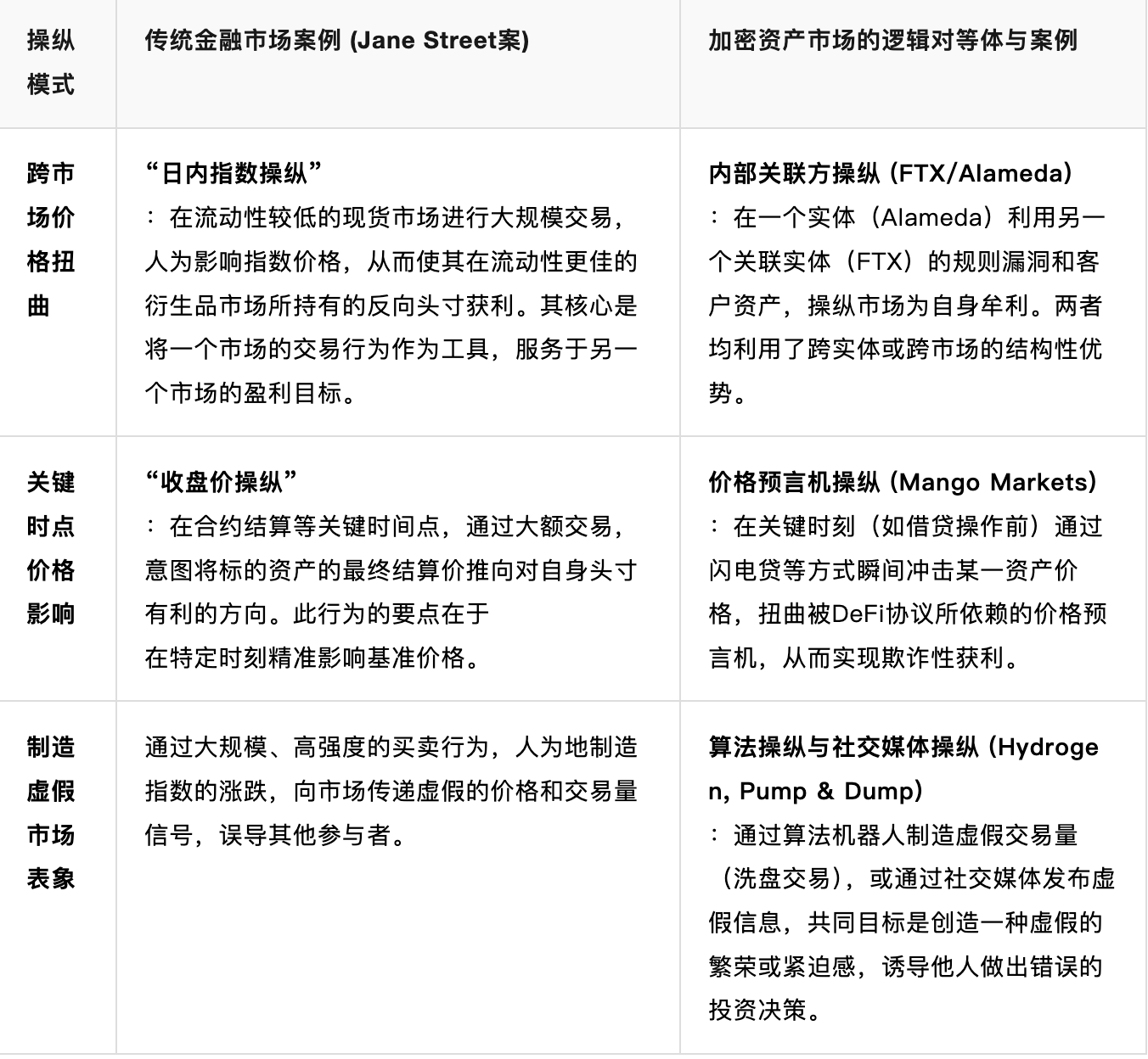 Jane Street 印度案的手法与 Crypto 市场中的一系列操纵事件具有高度同构性,揭示了技术优势如何在缺乏监管约束的系统中演变为操控工具。无论是 Mango Markets 中通过操纵预言机抬高抵押品获取杠杆,FTX/Alameda 的平台币伪价套利,还是 BitMEX 纵容内部员工在衍生品市场洗盘交易,这些行为本质上都在利用某种结构性漏洞制造信息不对称,从而实现对普通参与者的「系统性捕猎」。不同于传统金融对市场操纵已有成熟立法,加密领域的灰色地带更广、界限更模糊,使得类似行为更隐蔽、更常态化。Jane Street 在传统金融中所展现的策略,正是 Crypto 项目方、做市商和头部交易所长期默契运作的「隐形剧本」:通过资产价格操控、算法驱动订单动态、甚至社交媒体制造叙事影响,从而误导散户和中小机构。正因如此,Jane Street 案不仅是传统监管向量化霸权亮剑的案例,更是加密行业必须直面的镜子 —— 市场操纵并非金融中心独有,而是所有以数据和算法为载体的博弈系统的潜在共病。理解这些模式、识别其演化逻辑,是所有 Crypto 项目和参与者的合规前提与生存底线。( 来源)