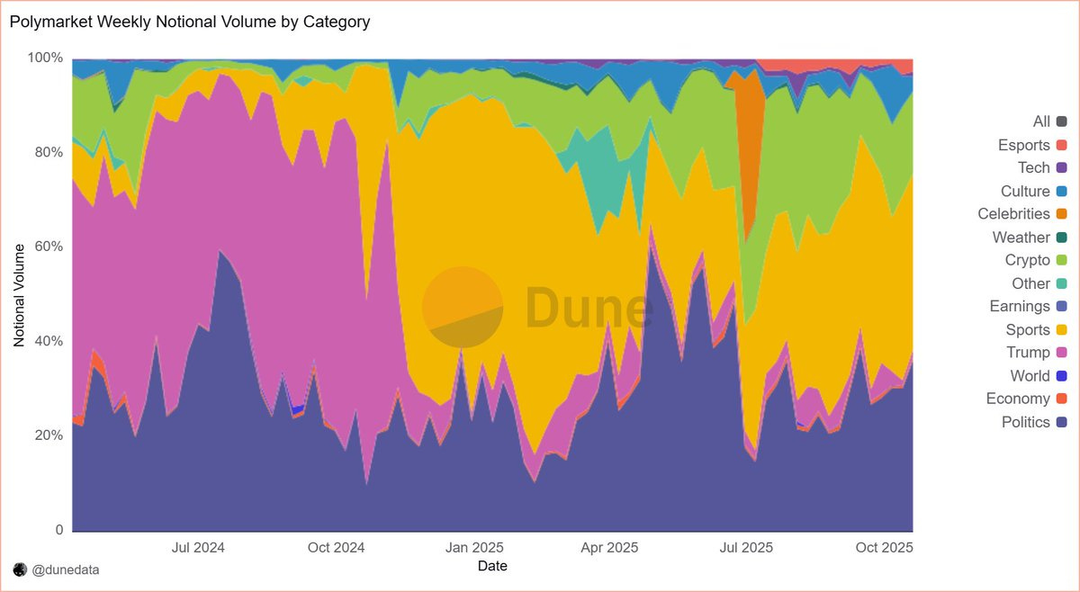 baheet:2025 年,预测市场正在经历一场类似于加利福尼亚淘金潮的爆发。从美国大选、NFL 比赛到全球事件,顶级平台如 Kalshi 和 Polymarket 的交易量正迅猛增长。尽管这一领域充满机遇,但对于想要加入的创业公司而言,有一个明确的教训:不要仅仅为了追求短期利益,去搭建一个新的交易平台。而是应该像历史上的淘金潮一样,卖铲子 —— 构建支撑这些平台运行的基础设施,或者创造一个独特的差异化产品。这一战略不仅更安全,而且在预测市场这样一个网络效应强烈且监管严苛的环境下,更加明智。预测市场目前已从一个加密领域的细分市场,发展成了一个由机构投资者大量参与、监管环境逐步改善的成熟行业。根据数据,2025 年预测市场的每周交易量已经突破了 20 亿美元,而机构投资者的资金不断涌入,推高了市场估值。而像 Kalshi 和 Polymarket 这样的公司,凭借强大的市场份额和资金支持,已经在这个领域牢牢占据了主导地位。
