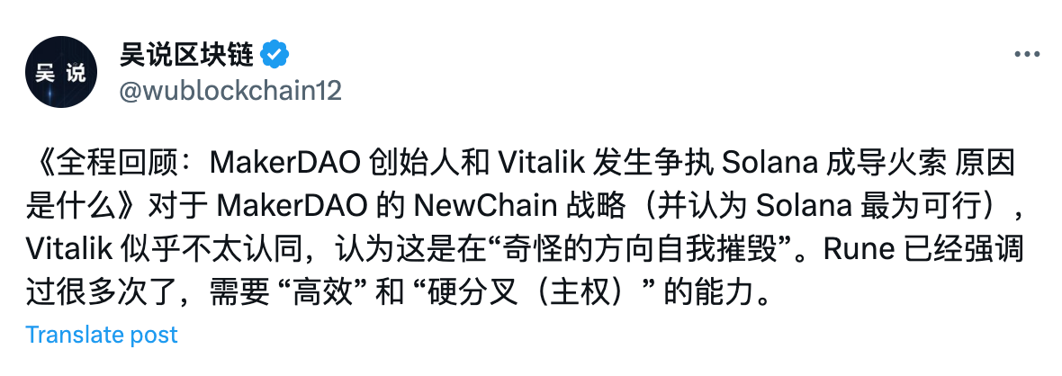 4️⃣ 一文回顾 MakerDAO 创始人和 Vitalik 争执始末:Solana 成导火索,原因是什么?