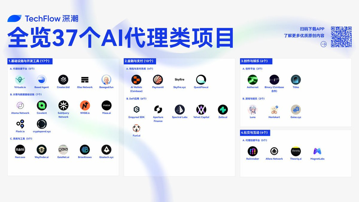 导读:深潮 TechFlow 梳理了 AI 代理概念的项目布局,从基础设施、金融支付到创作娱乐与社交互动,揭示了 AI 代理如何结合区块链技术重塑产业生态。