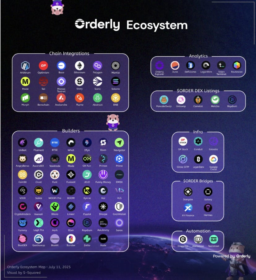 Hyperliquid 的思路相当直接:打造链上版的币安。它通过完全链上的订单簿和原生流动性引擎,提供接近 CEX 的交易体验。对专业交易员而言,深度和速度是刚需,而 Hyperliquid 正是抓住了这一点,凭借低延迟与透明结算,既保证了用户熟悉的操作体验,也提升了资金安全性。Hyperliquid 在当前去中心化永续合约 DEX 市场中已占据超过 70% 的份额,几乎一骑绝尘。与之不同,Orderly 并未选择正面争夺用户,而是走「基础设施层」路线。它通过资产层、引擎层、结算层三层架构,向外部应用开放订单簿与撮合引擎,使不同前端能够快速上线衍生品交易。简单说,Orderly 更像一个交易中介枢纽:用户在前端应用下单,订单会被路由到 Orderly 系统,由其完成配对、结算与资金划转。核心产品 Orderly Chain 则承担跨链数据传递与账本记录,确保整个系统可扩展。借助这一模式,接入的每个应用都能共享流动性,避免了「流动性分散」的顽疾。近期,Orderly 还通过接入 Ceffu 托管、引入 Kronos Research 量化策略,推出 OmniVault,多链资产可统一管理并获取高收益,过去 30 天年化收益率甚至达到 26%,进一步提升了其吸引力。Hyperliquid 强调极致性能与用户体验,而 Orderly 强调规模效应与生态赋能,两者路径清晰且差异鲜明。