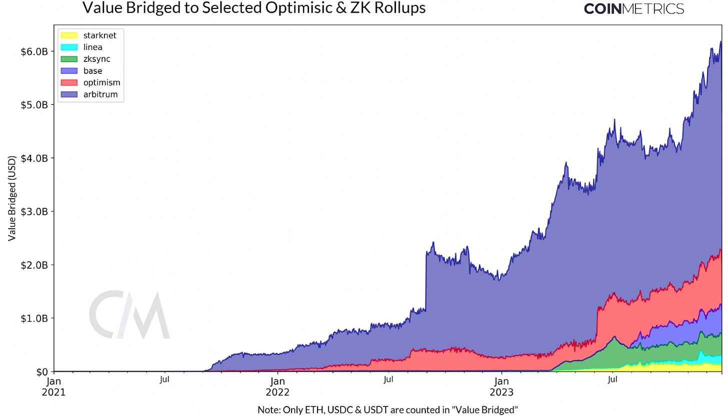 2023 年,DeFi 成为以太坊的主要用例和需求,与 DeFi 相关的 gas 使用量从 1 月份的 31% 开始,到年底上升到近 50%。值得注意的是,Uniswap 占全年以太坊交易量的 11.7%。随着 DeFi 需求持续增长,以太坊上的 NFT 兴趣下降。NFT gas 从 1 月份的 32% 下降至 12 月份的 7% 。9 月份的 NFT 交易量创下 2021 年以来的最低月份。2023 年,以太坊质押增加了 82%,这可能是由于上海升级所致。随着超过 24% 的 ETH 被质押,LST 的用例不断扩大:提高收益率(抵押品、Blast)、支持稳定币和在 Eignelayer 等新用例中得到利用。2023 年 L2 的采用率有所增长,DeFi 巩固了其作为主要用例的地位,以太坊质押持续增加,为 2024 年的重要一年奠定了基础。【原文为英文】( 来源 )