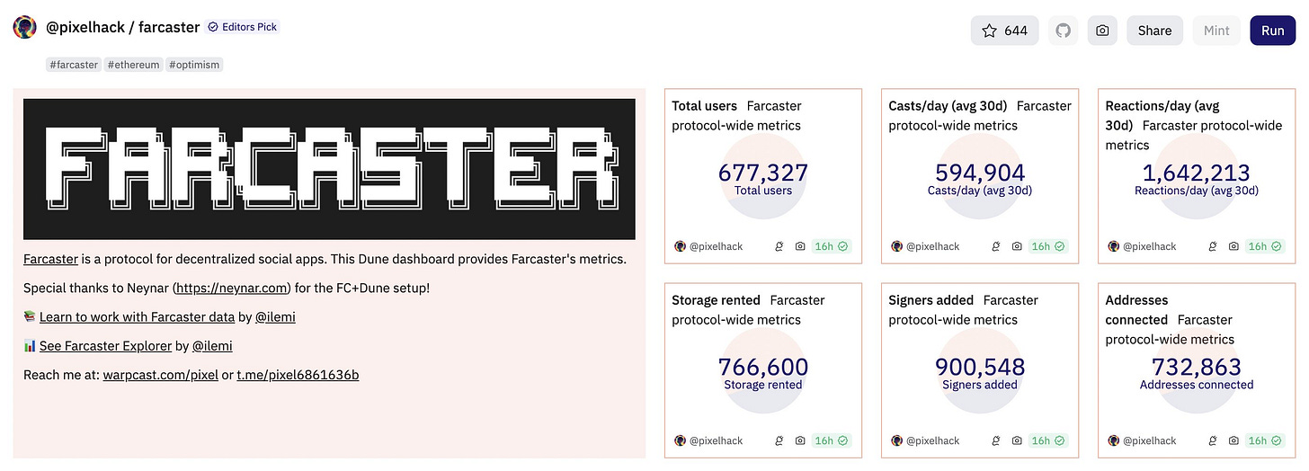 营收模式:Farcaster 的收入来源包括新用户注册、老用户续费及额外存储空间付费。当前,Farcaster 协议累计收入超 230 万美元,日均收入约 1290 美元,拥有约 67 万用户。这一稳定的收入和用户基础为 Farcaster 的长期成功提供了保障。( 来源 )