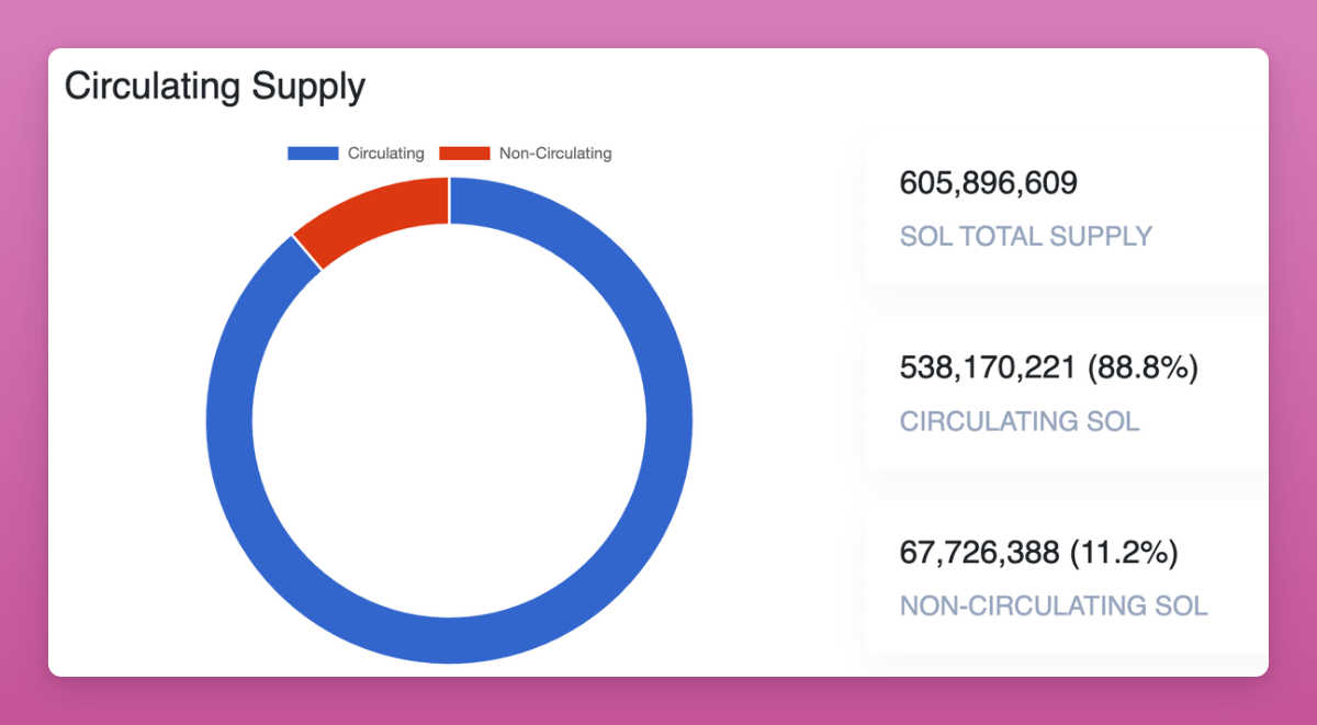 与 ETH 不同,Solana(SOL)的供应是通胀性的,其年通胀率为 4.395%,计划逐年递减至最终的 1.5%。截至目前,SOL 总供应中已有 88% 处于流通状态,而这其中高达 71% 被用于质押,这一比例远高于 ETH 的 30%。然而,据 Solanacompass 报告,其中约 6.7% 为锁仓状态,包括早期投资人、团队和 VC 地址。Messari 数据则指出,99.88% 的 SOL 已完成解锁,仅剩 60 万枚由 FTX 遗产持有,因此锁仓数据存在出入,可能由于统计口径不同。SOL 质押率高带来网络安全性的增强,但流动性却受到限制。此外,目前仅有 14.3% 的质押量来自流动性质押代币(LST),若更多原生质押转为 LST,将可能释放数十亿美元的流动性,推动 Solana DeFi 生态扩张。