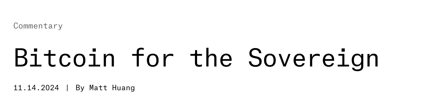 Matt Huang: - 现在多个主权国家都持有 BTC,其中最公开的是萨尔瓦多。