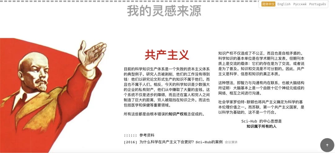 Sci-Hub 就是在这种背景下大杀四方,2011 年,出生时还是苏联人的哈萨克斯坦人 Alexandra Elbakyan 女士痛感学术期刊的无耻,决定将他们免费发上网,这就是一切故事,和比特币诞生几乎同步的故事,关于爱智慧与爱自由的故事。在 Alexandra Elbakyan 看来,科研知识的产权属于全人类,学术出版社不应该以运营的借口封闭知识传播的渠道, sci-hub 的使用极其简单,只要获取对应论文的 DOI 编号,就可以一键获取正文,省去所有的步骤,让知识回归到最本真的作用。