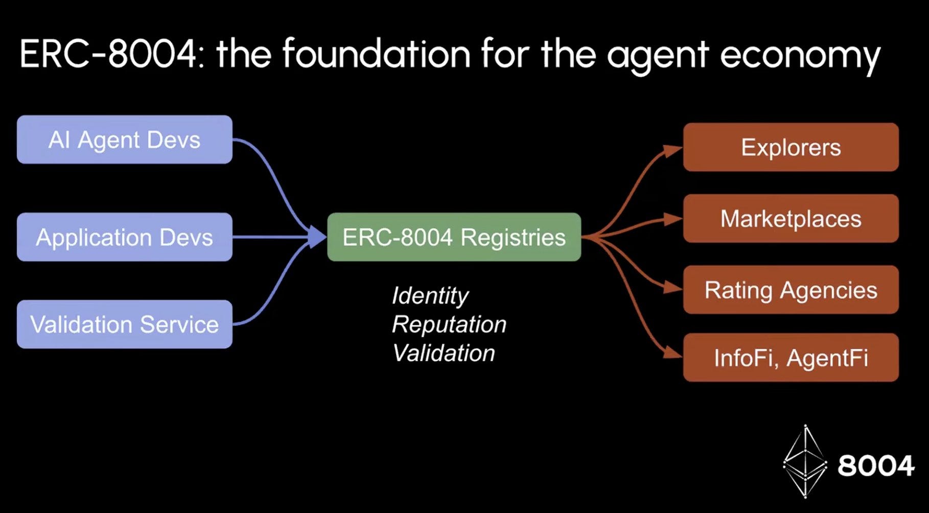 ERC-8004 核心设计包括三个轻量化链上注册表: