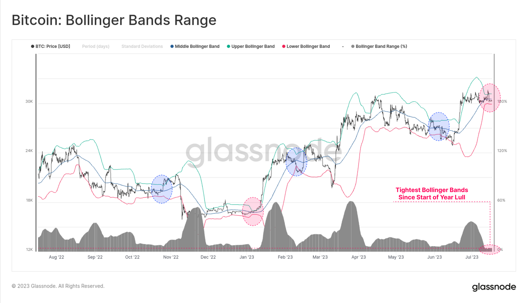尽管本周暂时创下 3.17 万美元的年度新高,但 BTC 价格继续在非常狭窄的交易区间内交易。这导致布林线极度收紧,其差距仅为 4.2%。