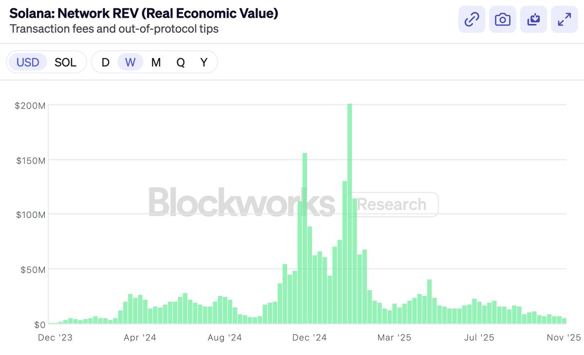去年底,Solana 非常自豪地拥抱了 REV —— 一种终于能证明他们估值合理的指标。他们宣布:我们 —— 并且只有我们 —— 不再对华尔街虚张声势。结果当然是:REV 被正式拥抱没多久就崩盘了(尽管讽刺的是 SOL 的表现比 REV 好多了)。接着是 Hyperliquid 的发布。一个有真实收入、有回购、有市盈率的 DEX。Hyperliquid、Pump、Sky,这些高回购代币都很棒。但市场一直都能投资交易所。你随时可以买 Coinbase、BNB、或者其他。我们自己也持有 $HYPE,我也认为它是个优秀的产品。但这不是人们投资 ETH 和 SOL 的原因。L1 没有交易所式的利润率,并不是人们买它们的理由 —— 如果他们要这种,就会去买 Coinbase 股票。所以如果我不是要批评区块链财务指标,你可能会以为我要来谴责「代币工业综合体」的原罪。