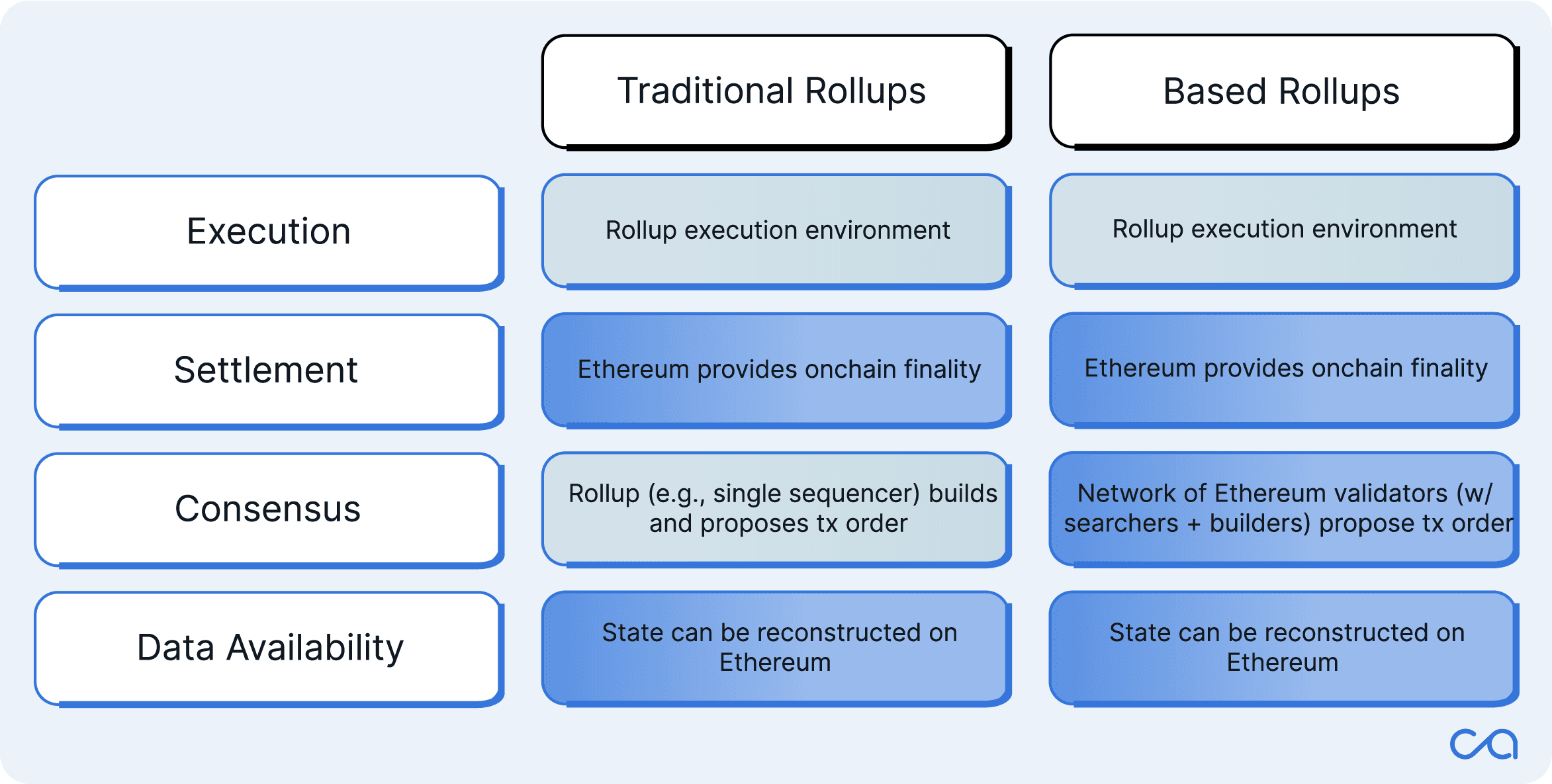 Based Rollup 解决了以太坊当前 L2 面临的三大挑战:1)安全性:Based Rollup 利用了以太坊的验证器集,继承了主链的一些安全属性。不过,它也可能带来新的挑战。例如,如果系统不支持私有 RPC,搜索者就有最大的机会利用交易及其相关的 MEV。2)可组合性:Based Rollup 智能合约旨在通过促进不同 Rollup 智能合约之间以及 Rollup 和基础层之间的交互来提高可组合性。3)经济一致性:虽然 Based Rrollup 有可能允许 Rollup 产生的 MEV 流回参与排序的以太坊 L1 验证器,但这并不是一个硬性规定。实施 Based Rollup 的主要挑战在于交易确认的速度有多快。以太坊的区块时间约为 12 秒,这意味着任何「基于」以太坊的 Rollup 程序都会继承这一限制。