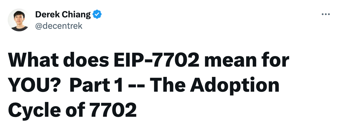 6️⃣ 【英文长推】探索 EIP-7702 的采用周期:钱包、用户、dapp 和嵌入式钱包将如何受益?