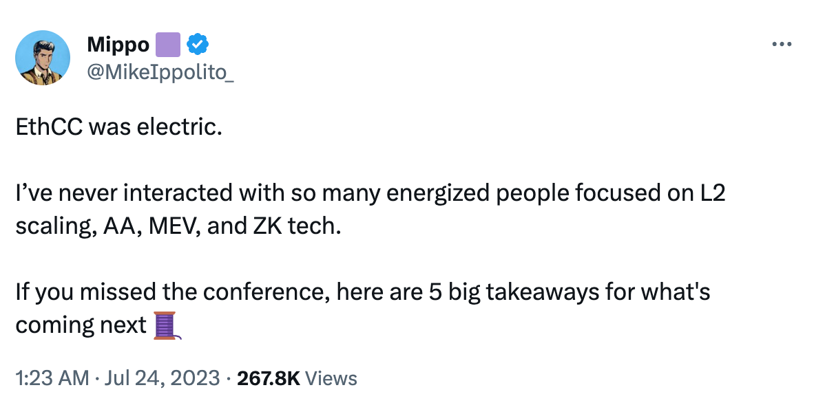 6️⃣ 【英文长推】Polygon 产品副总裁:关于 EthCC 参会后的 8 点感想